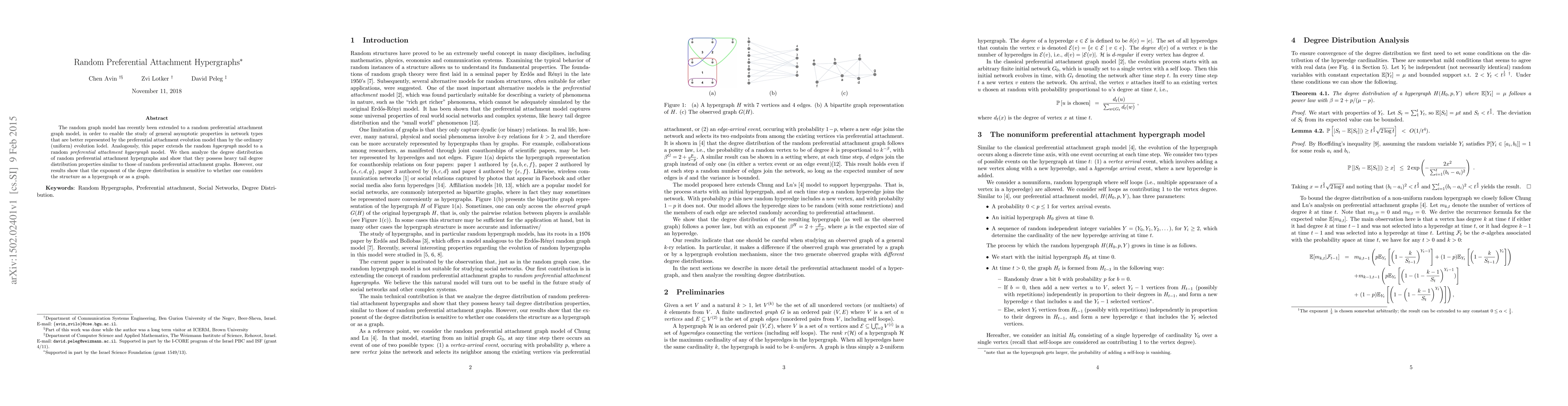 This paper extends the random hypergraph model to a preferential attachment framework, analyzing the degree distribution which exhibits heavy-tail properties akin to preferential attachment graphs, though the degree distribution's exponent varies depending on whether the structure is treated as a hypergraph or a graph.