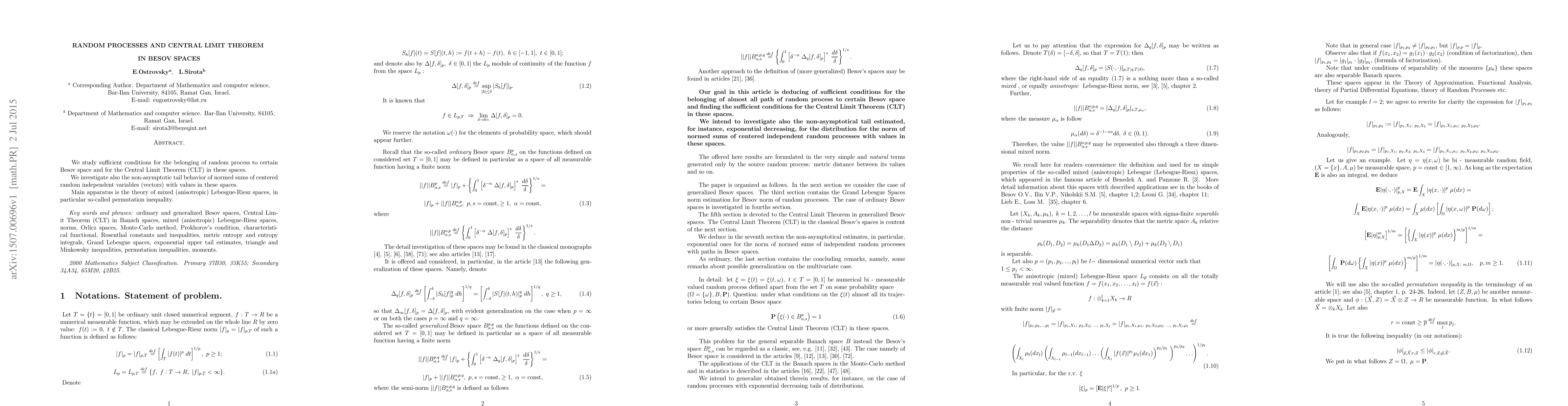 This paper explores the conditions for random processes to belong to Besov spaces and investigates the Central Limit Theorem (CLT) within these spaces. It also examines the non-asymptotic tail behavior of normed sums of independent random variables, utilizing the theory of mixed Lebesgue-Riesz spaces.