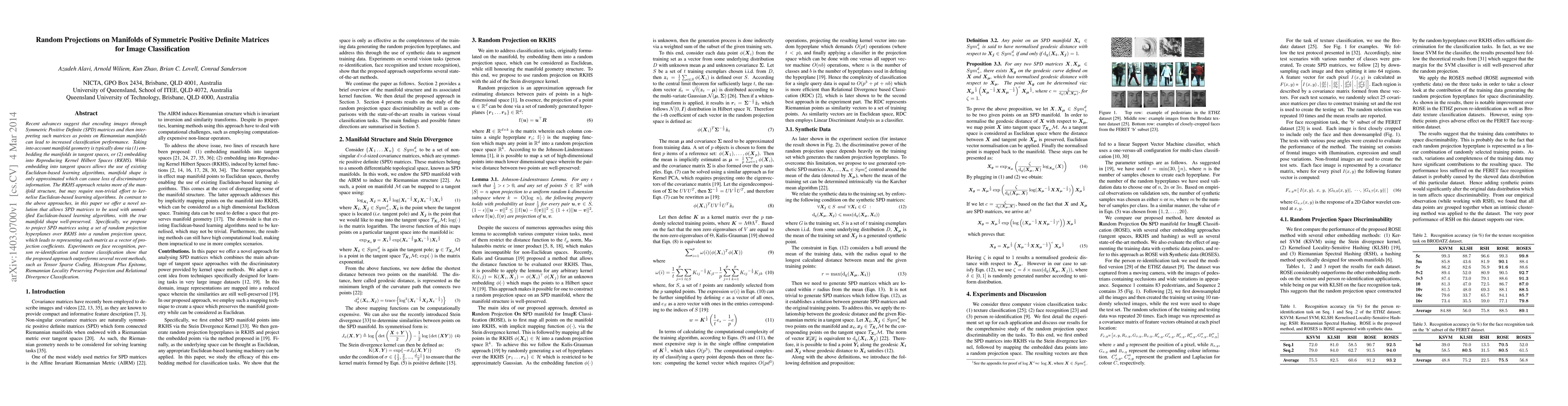This paper proposes a novel method for using Symmetric Positive Definite matrices in image classification by projecting them onto a random projection space over Reproducing Kernel Hilbert Spaces, preserving manifold geometry without kernelizing algorithms. Experimental results show superior performance over several state-of-the-art methods in face recognition, person re-identification, and texture classification.