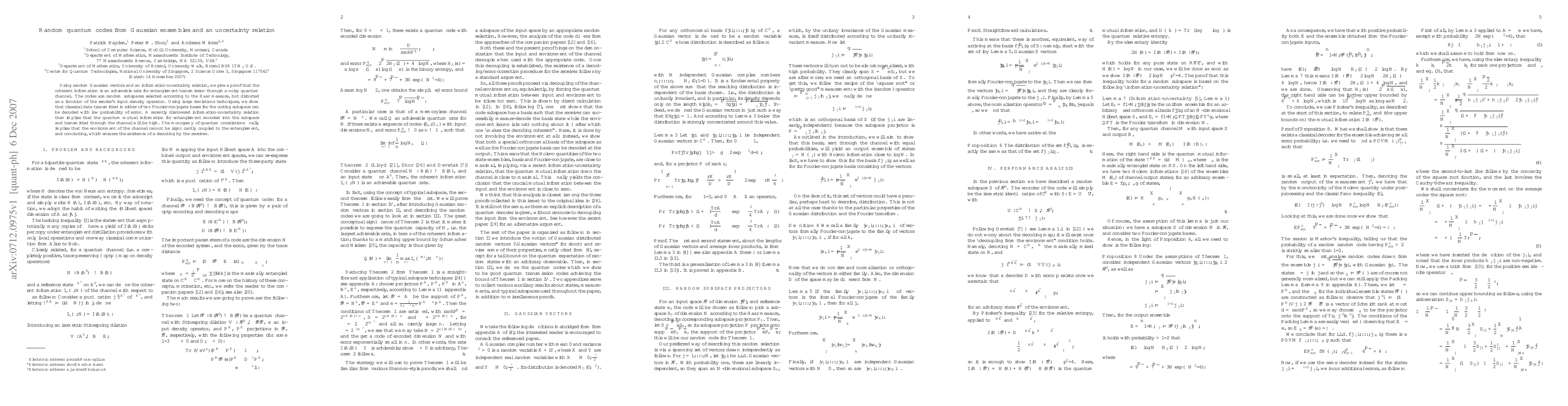 Using random Gaussian vectors and an information-uncertainty relation, we give a proof that the coherent information is an achievable rate for entanglement transmission through a noisy quantum channel. The codes are random subspaces selected according to the Haar measure, but distorted as a function of the sender's input density operator. Using large deviations techniques, we show that classical data transmitted in either of two Fourier-conjugate bases for the coding subspace can be decoded with low probability of error. A recently discovered information-uncertainty relation then implies that the quantum mutual information for entanglement encoded into the subspace and transmitted through the channel will be high. The monogamy of quantum correlations finally implies that the environment of the channel cannot be significantly coupled to the entanglement, and concluding, which ensures the existence of a decoding by the receiver.