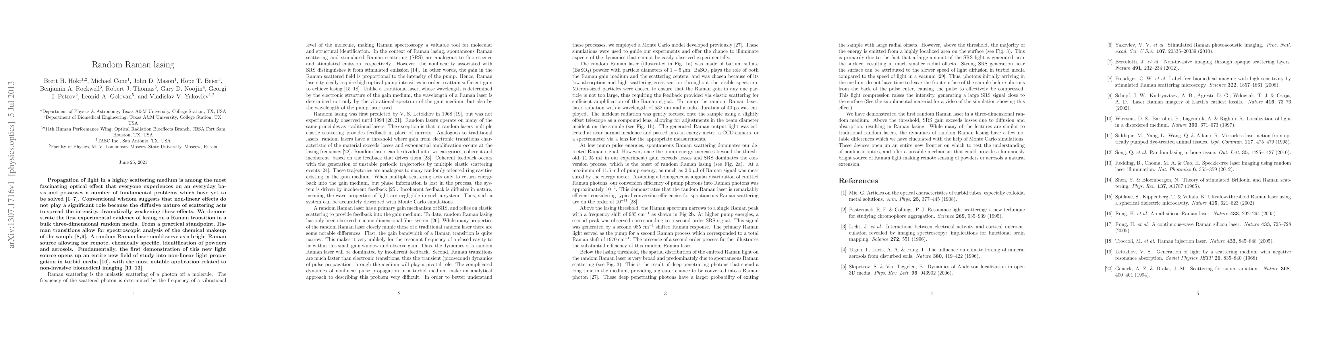 This paper presents the first experimental evidence of Raman lasing in a three-dimensional random medium, challenging conventional wisdom about non-linear effects in scattering media. This discovery has potential applications in remote chemical analysis and non-invasive biomedical imaging.
