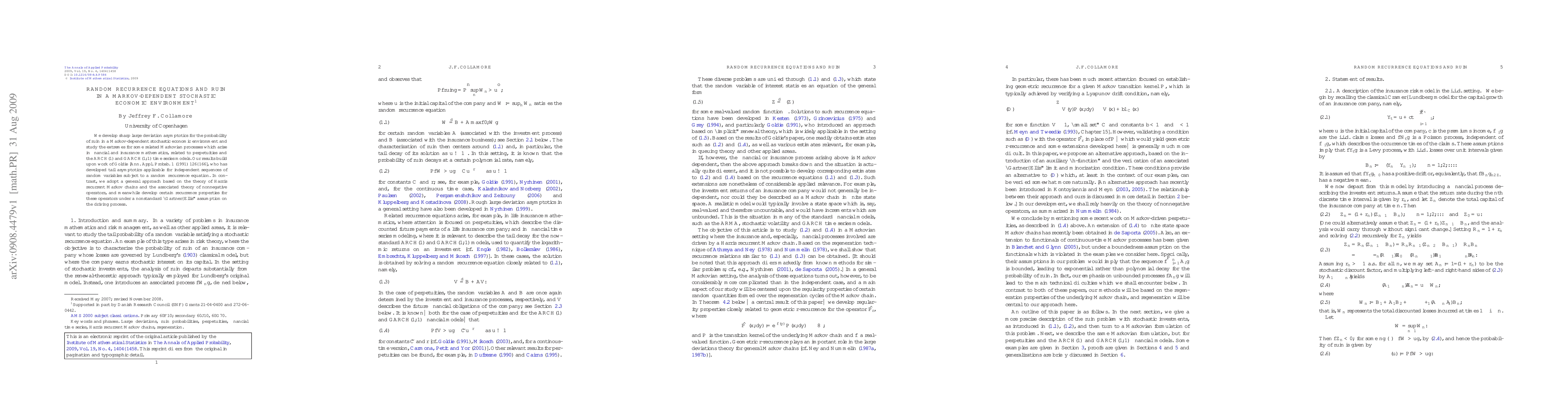 Researchers developed large deviation asymptotics for ruin probability in a Markov-dependent stochastic economic environment, building on previous work to provide sharp bounds for related financial and insurance processes.