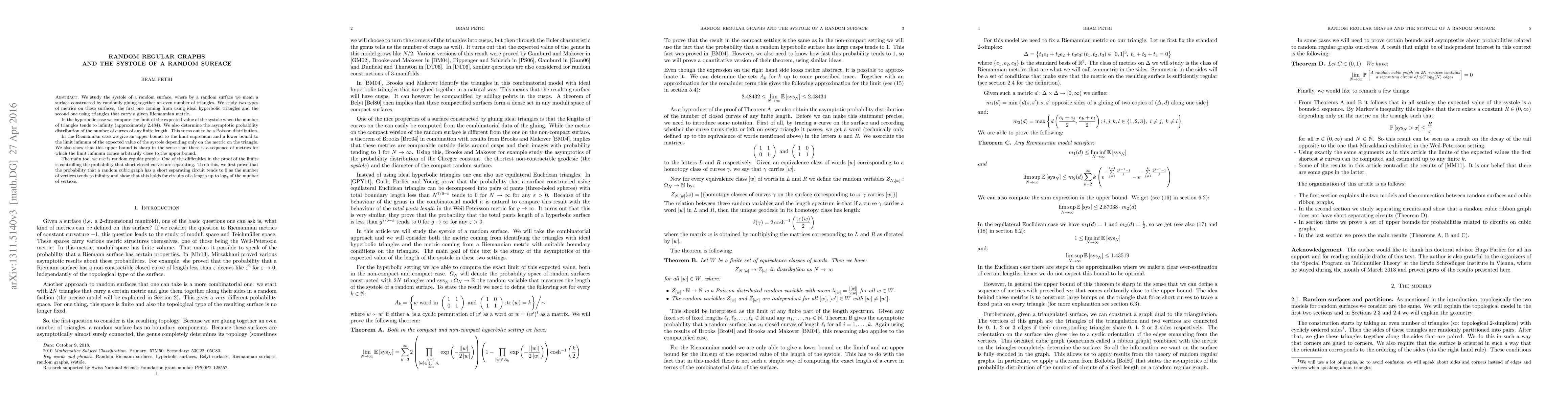 Researchers studied the systole of random surfaces, finding that in the hyperbolic case, the expected systole approaches 2.484 as the number of triangles increases, with a Poisson distribution for curve lengths; in the Riemannian case, an upper bound is established for the limit supremum and infimum of the expected value.