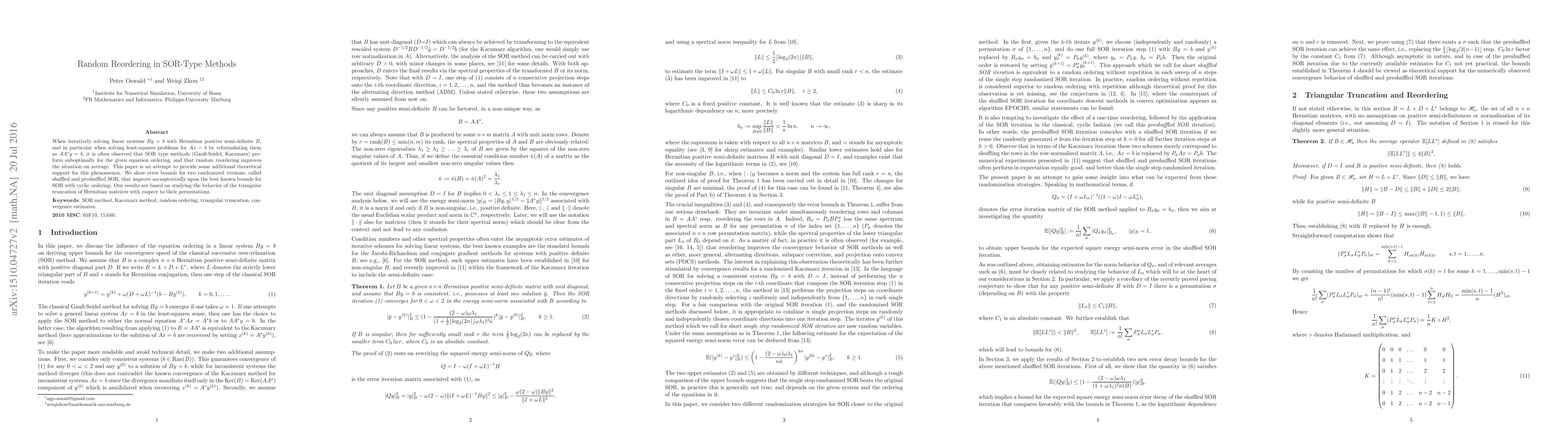 This paper offers theoretical support for the observation that random reordering enhances the performance of SOR-type methods in solving linear systems, particularly for least-squares problems. It presents error bounds for randomized SOR versions, shuffled and preshuffled, which surpass existing cyclic-ordering bounds asymptotically. The study focuses on the triangular truncation behavior of Hermitian matrices under permutations.