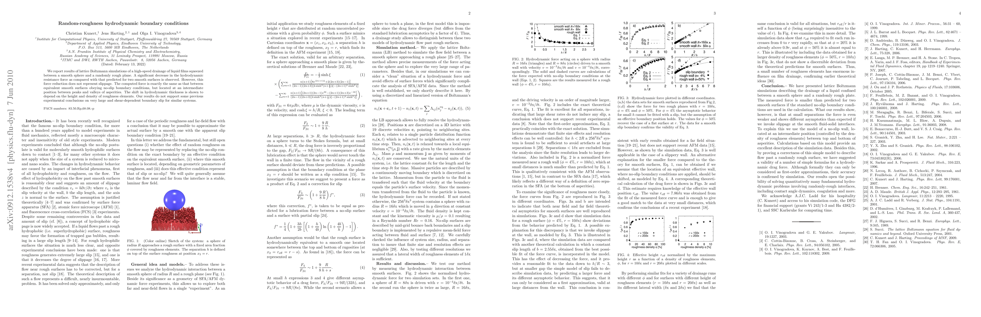 This study uses lattice Boltzmann simulations to investigate high-speed drainage of liquid films between a smooth sphere and a randomly rough plane, finding a significant decrease in hydrodynamic resistance due to a shift in effective thickness rather than slip. The results challenge previous experimental claims of large boundary slip in similar systems.