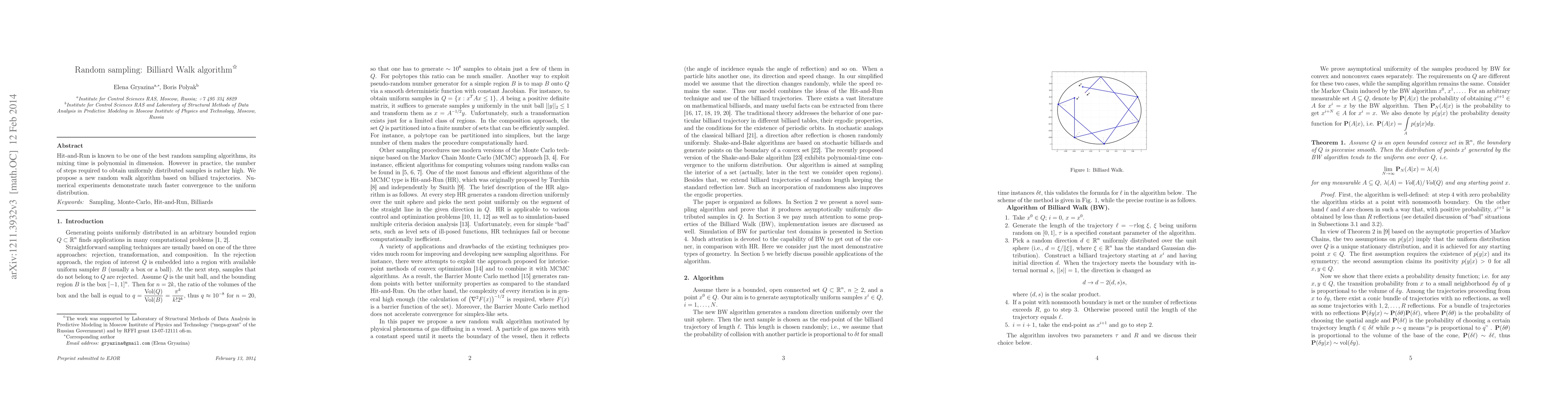 Researchers propose a new billiard-inspired random sampling algorithm that converges to uniform distribution faster than traditional Hit-and-Run method.