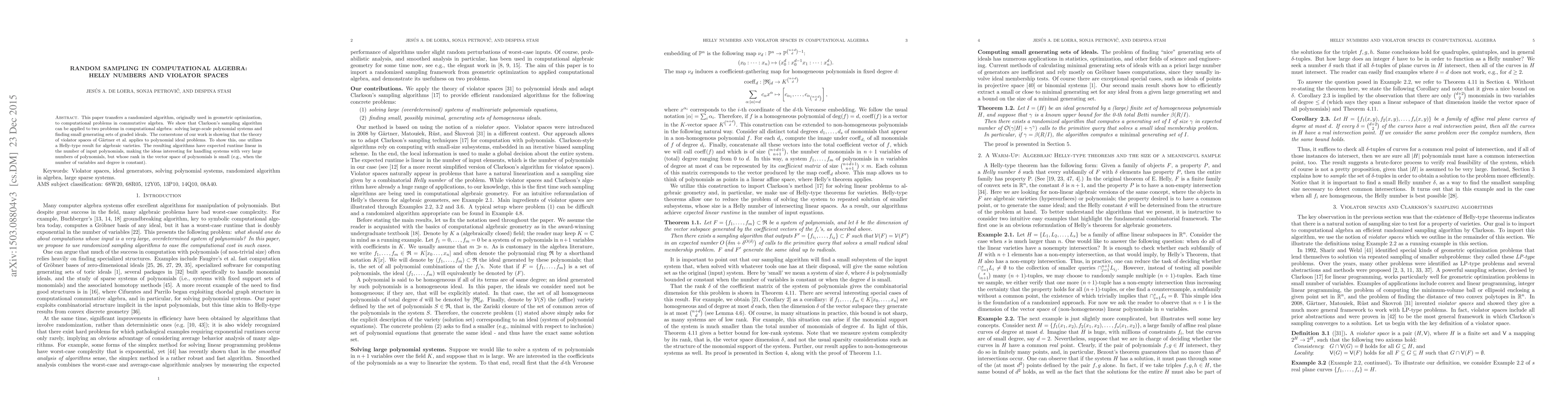 This paper transfers a randomized algorithm, originally used in geometric optimization, to computational problems in commutative algebra. We show that Clarkson's sampling algorithm can be applied to two problems in computational algebra: solving large-scale polynomial systems and finding small generating sets of graded ideals. The cornerstone of our work is showing that the theory of violator spaces of G\"artner et al.\ applies to polynomial ideal problems. To show this, one utilizes a Helly-type result for algebraic varieties. The resulting algorithms have expected runtime linear in the number of input polynomials, making the ideas interesting for handling systems with very large numbers of polynomials, but whose rank in the vector space of polynomials is small (e.g., when the number of variables and degree is constant).