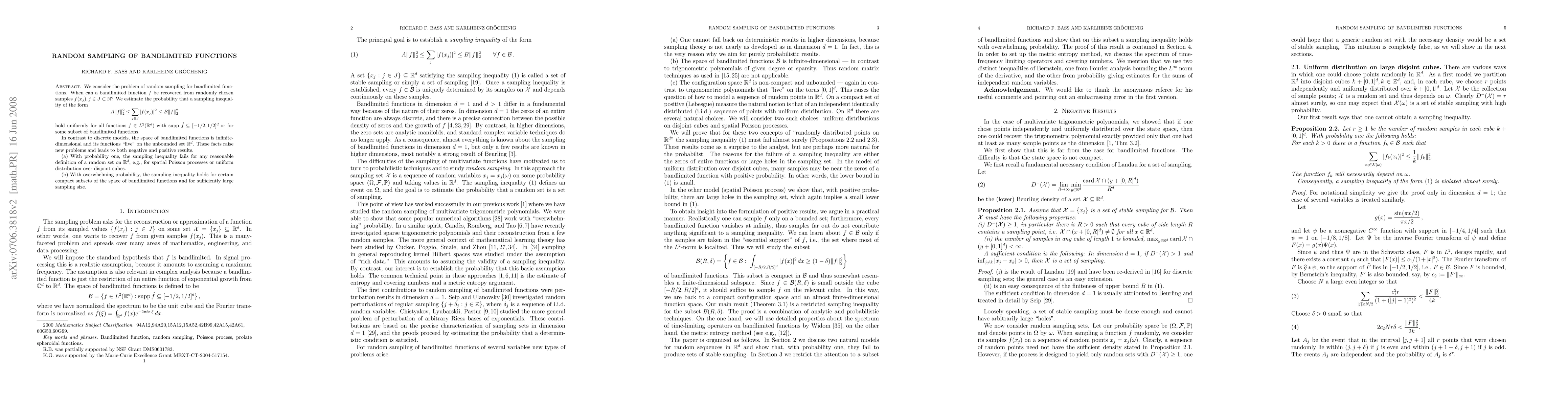 Researchers investigated the probability of recovering band-limited functions from random samples, finding that with overwhelming probability, the sampling inequality holds for compact subsets of these functions with large enough sample sizes.