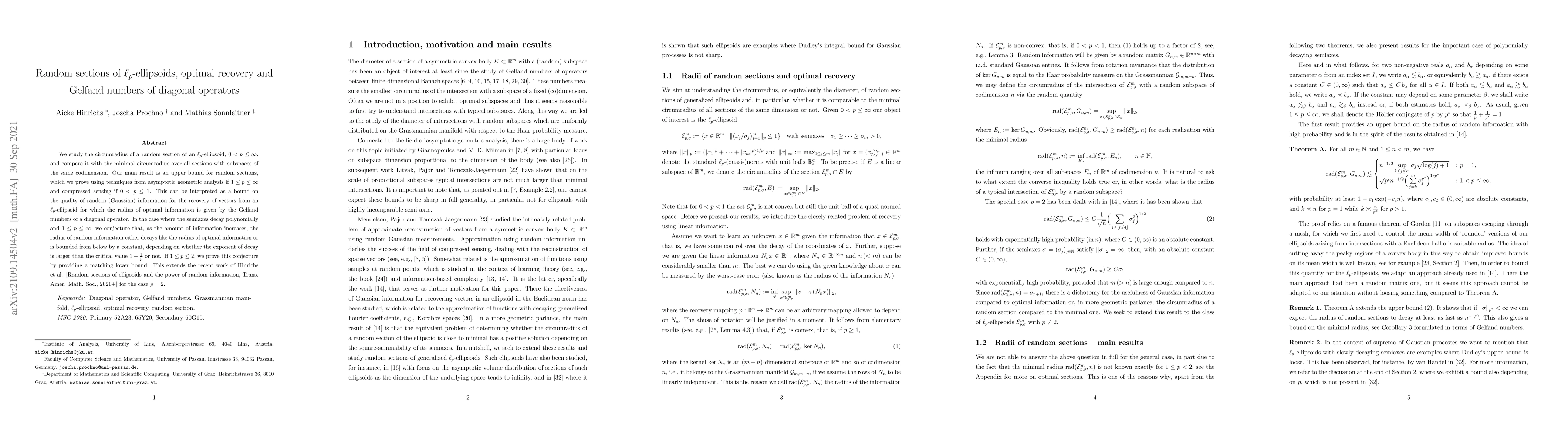 This paper investigates the circumradius of random sections of $\ell_p$-ellipsoids and compares it to the minimal circumradius of all sections. It establishes an upper bound for random sections using asymptotic geometric analysis and compressed sensing, providing insights into the quality of random information for vector recovery within $\ell_p$-ellipsoids, linked to the Gelfand numbers of diagonal operators. The authors conjecture that the radius of random information either decays or is bounded based on the decay rate, which is proven for $1\leq p\leq 2$.