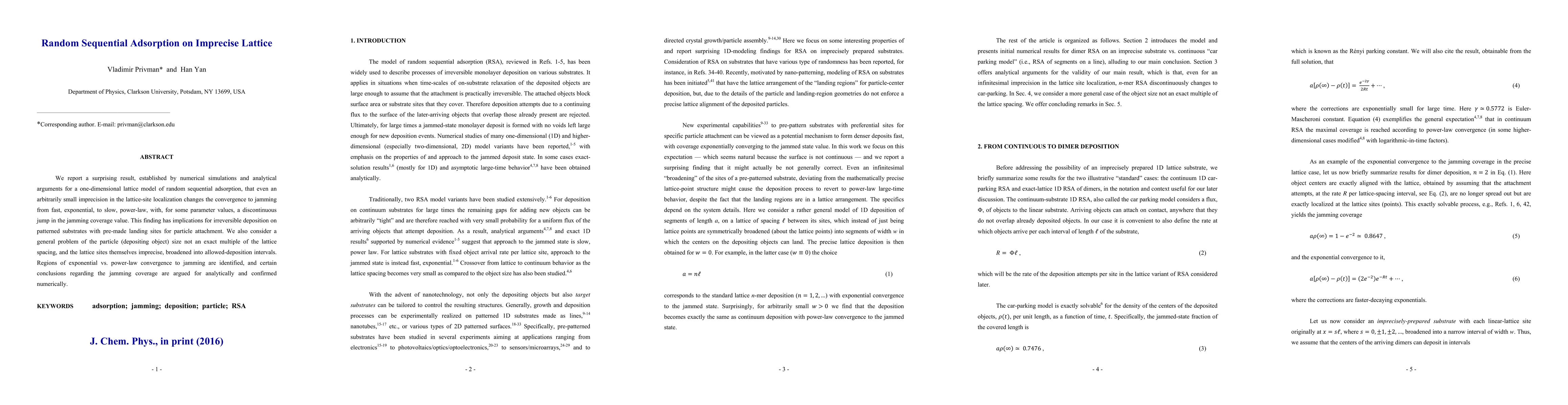 This paper finds that minor imprecision in lattice site localization alters the convergence to jamming in a one-dimensional random sequential adsorption model from exponential to power-law, with potential discontinuous changes in jamming coverage. The study also examines the effects of imprecise lattice sites and non-integer particle sizes, identifying regions of different convergence behaviors and confirming findings analytically and numerically.