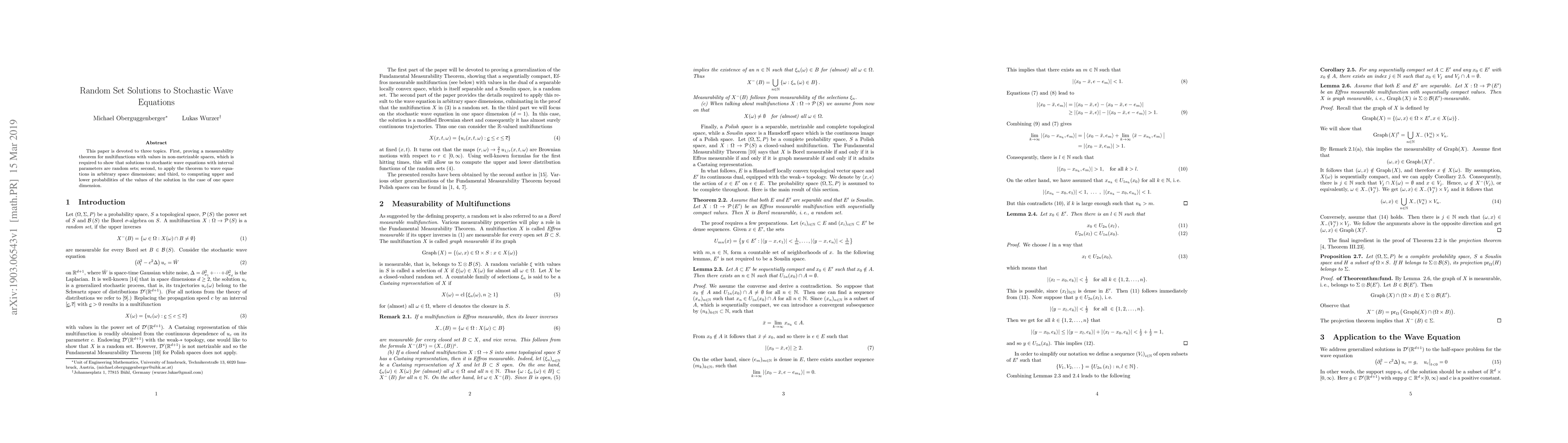 This paper develops a measurability theorem for multifunctions with values in non-metrizable spaces, enabling the study of random set solutions to stochastic wave equations in various dimensions.
