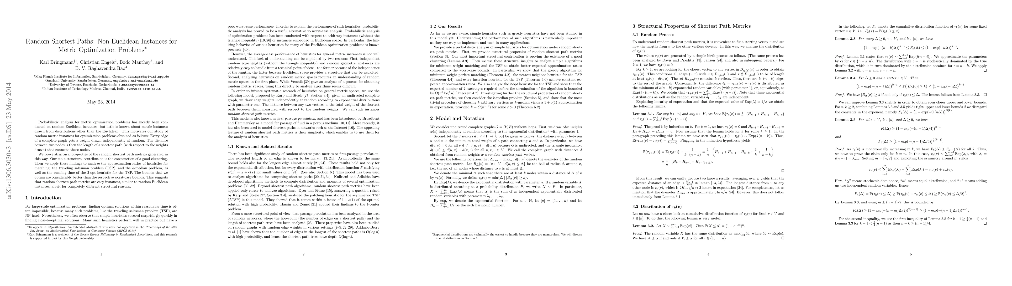This paper investigates random non-Euclidean metric instances for optimization problems by assigning random weights to edges of a complete graph. It proves structural properties of these metrics, notably constructing a good clustering, and demonstrates that heuristics for problems like matching, TSP, and k-median perform better on these instances than on worst-case scenarios, suggesting they are "easy" instances.