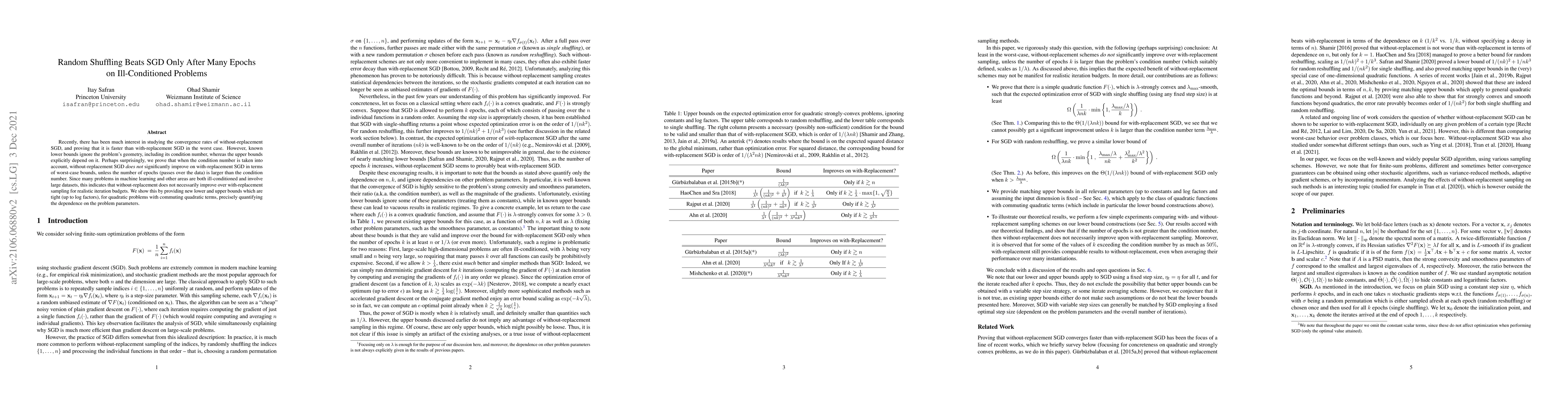 This paper demonstrates that without-replacement SGD does not outperform with-replacement SGD in ill-conditioned problems unless the number of training epochs exceeds the problem's condition number. It provides tight bounds showing that without-replacement SGD's benefits are not significant for realistic iteration limits.