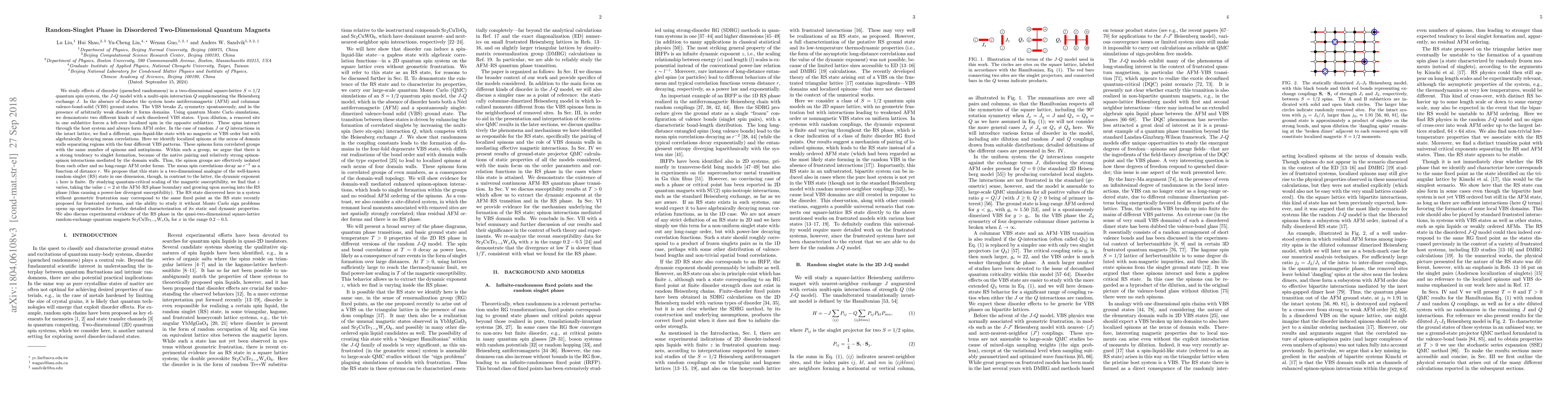 Researchers study a 2D quantum magnet with disorder and find two disordered valence-bond-solid states that exhibit algebraically decaying correlations and localized spinons, leading to a 'random singlet' state with no long-range order.