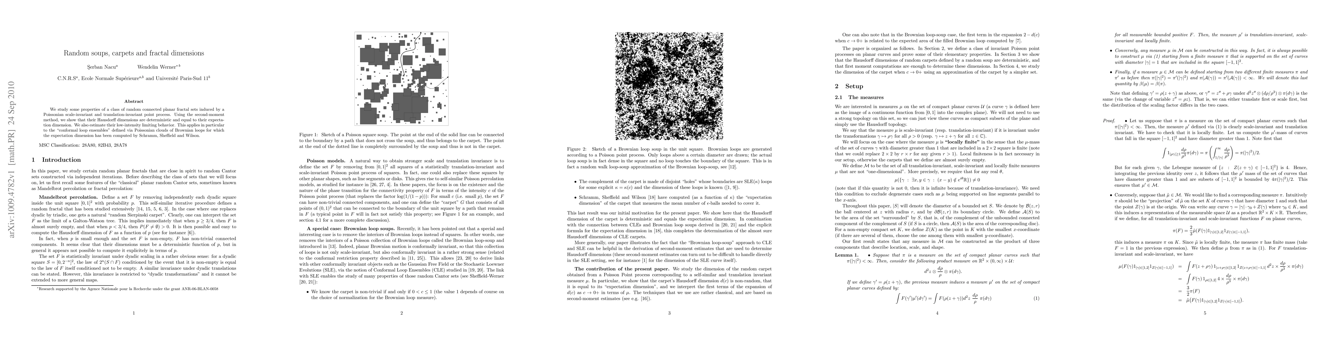 We study some properties of a class of random connected planar fractal sets induced by a Poissonian scale-invariant and translation-invariant point process. Using the second-moment method, we show that their Hausdorff dimensions are deterministic and equal to their expectation dimension. We also estimate their low-intensity limiting behavior. This applies in particular to the "conformal loop ensembles" defined via Poissonian clouds of Brownian loops for which the expectation dimension has been computed by Schramm, Sheffield and Wilson.