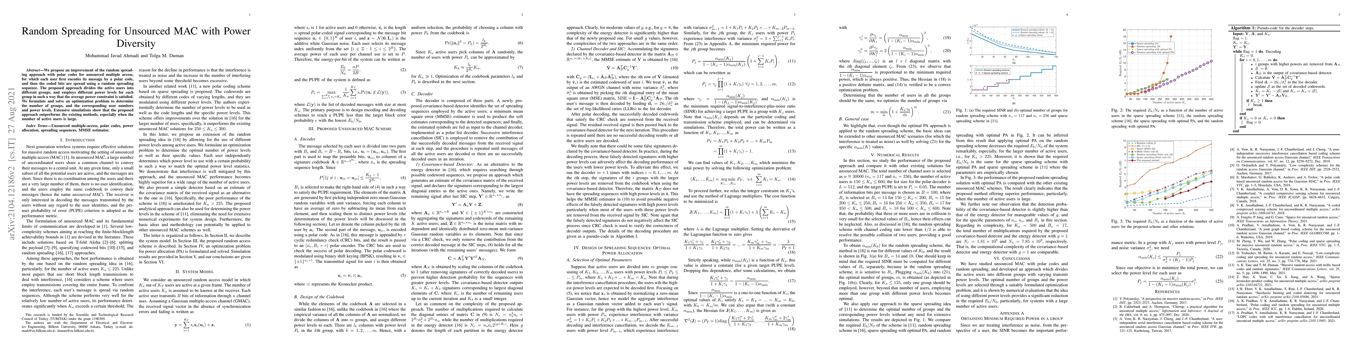 We propose an improvement of the random spreading approach with polar codes for unsourced multiple access. Each user encodes its message by a polar code, and the coded bits are then spread using a random spreading sequence. The proposed approach divides the active users into different groups, and employs different power levels for each group in such a way that the average power constraint is satisfied. We formulate and solve an optimization problem to determine the number of groups, and the number of users and power level of each group. Extensive simulations show that the proposed approach outperforms the existing methods, especially when the number of active users is large.