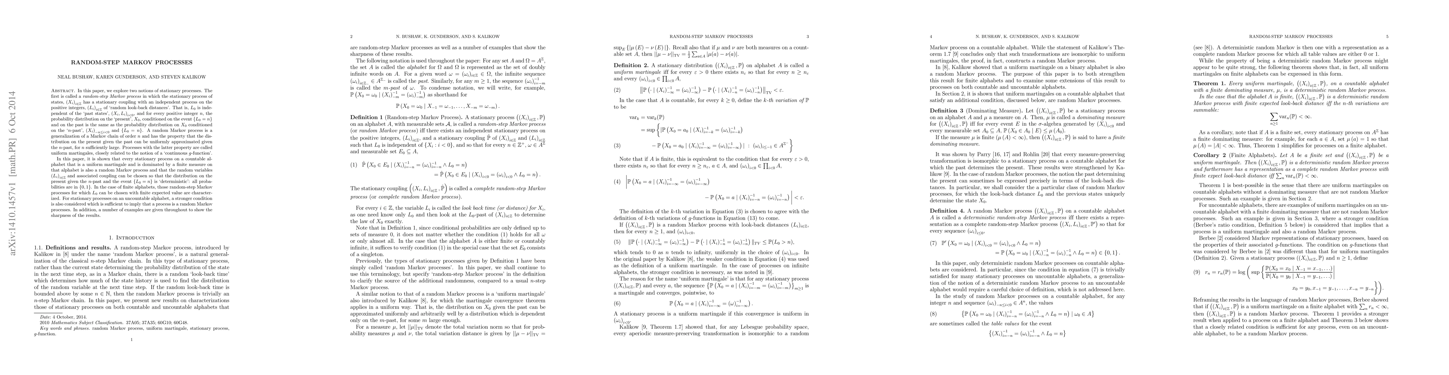 This paper introduces random-step Markov processes as a generalization of Markov chains, where the distribution on the present given the past can be uniformly approximated given the n-past for large n. It shows that certain types of stationary processes meet this criterion and provides conditions under which they are considered random Markov processes.