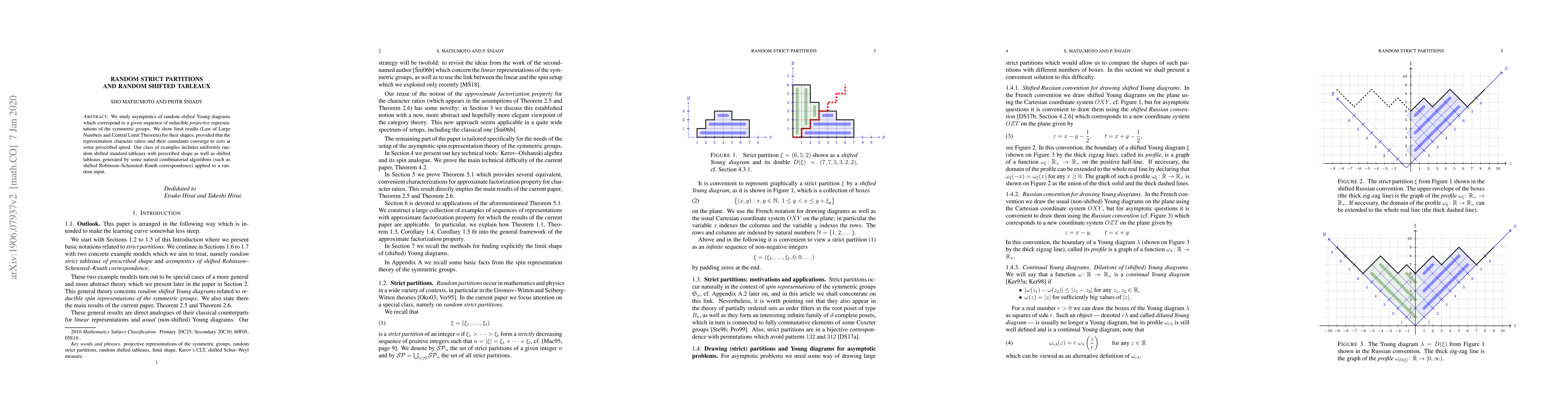 We study asymptotics of random shifted Young diagrams which correspond to a given sequence of reducible projective representations of the symmetric groups. We show limit results (Law of Large Numbers and Central Limit Theorem) for their shapes, provided that the representation character ratios and their cumulants converge to zero at some prescribed speed. Our class of examples includes uniformly random shifted standard tableaux with prescribed shape as well as shifted tableaux generated by some natural combinatorial algorithms (such as shifted Robinson-Schensted-Knuth correspondence) applied to a random input.