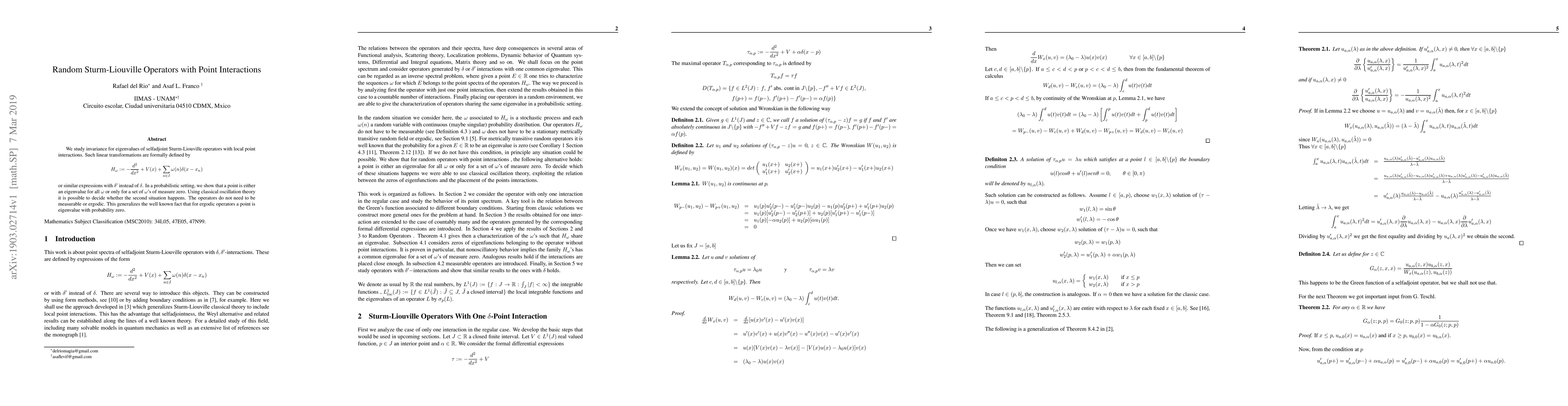 This paper investigates the eigenvalue behavior of selfadjoint Sturm-Liouville operators with point interactions, proving that a point is either an eigenvalue for all operators in the family or for a set of measure zero, with classical oscillation theory used to determine the latter case. This generalizes the probability zero eigenvalue result for ergodic operators.