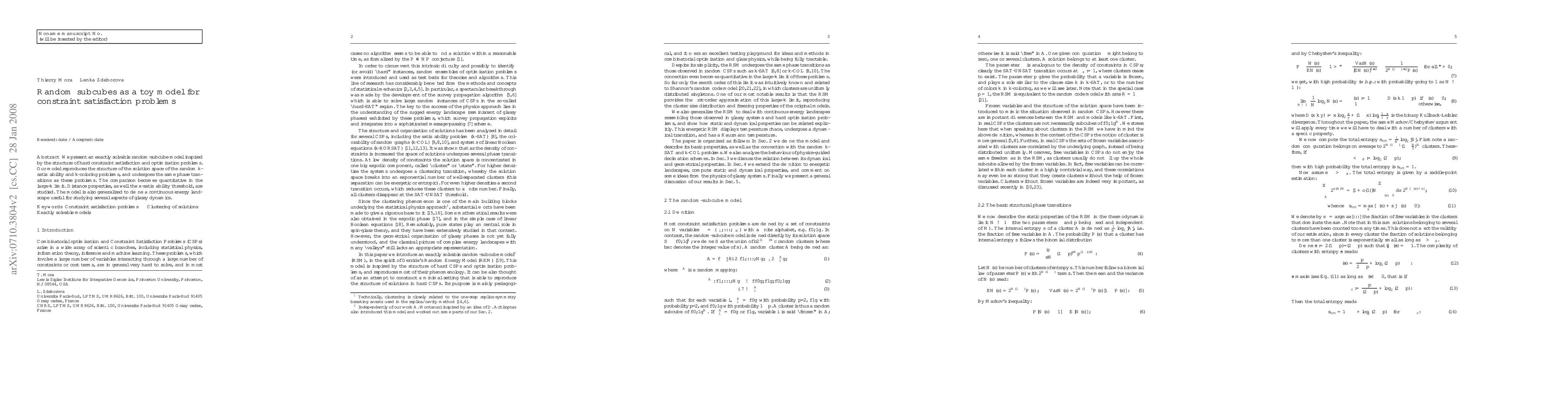 This paper introduces a random subcube model that mirrors the complexity of constraint satisfaction problems, demonstrating similar phase transitions and solution space structures as k-satisfiability and k-coloring problems. The model is further generalized to explore glassy dynamics in continuous energy landscapes.
