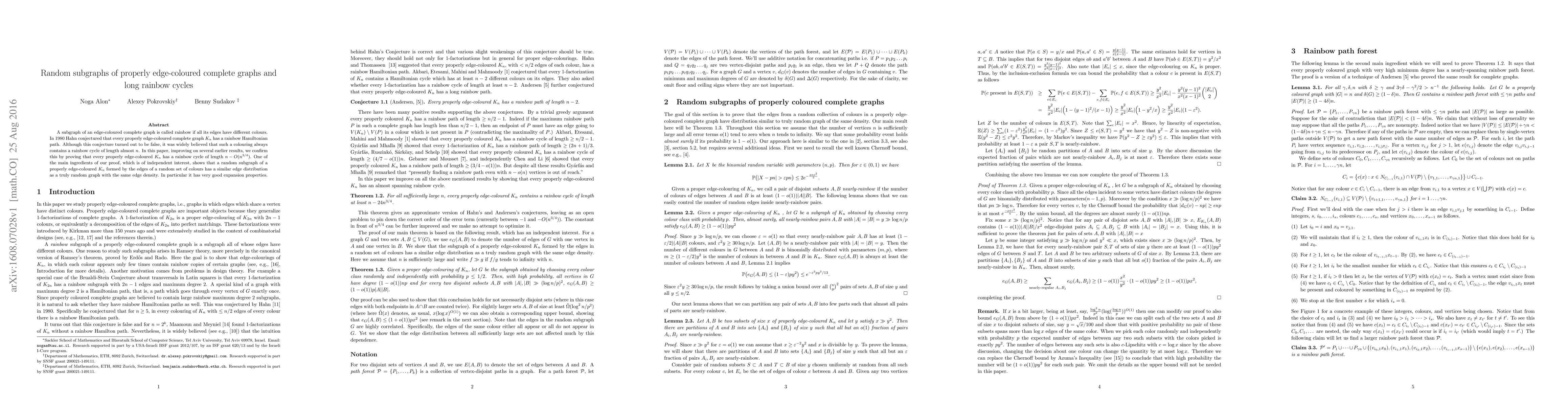 This paper proves that every properly edge-coloured complete graph $K_n$ contains a rainbow cycle of length $n-O(n^{3/4})$, confirming a long-standing belief. It also demonstrates that random subgraphs of such edge-coloured complete graphs exhibit properties similar to truly random graphs, including good expansion.