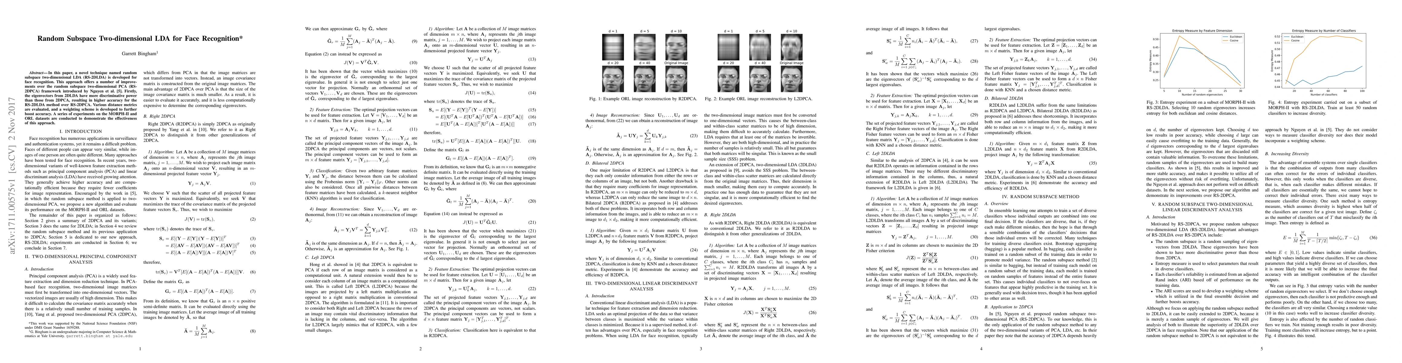 A new face recognition method called random subspace two-dimensional LDA (RS-2DLDA) offers improved accuracy over existing techniques, demonstrating its effectiveness on the MORPH-II and ORL datasets.