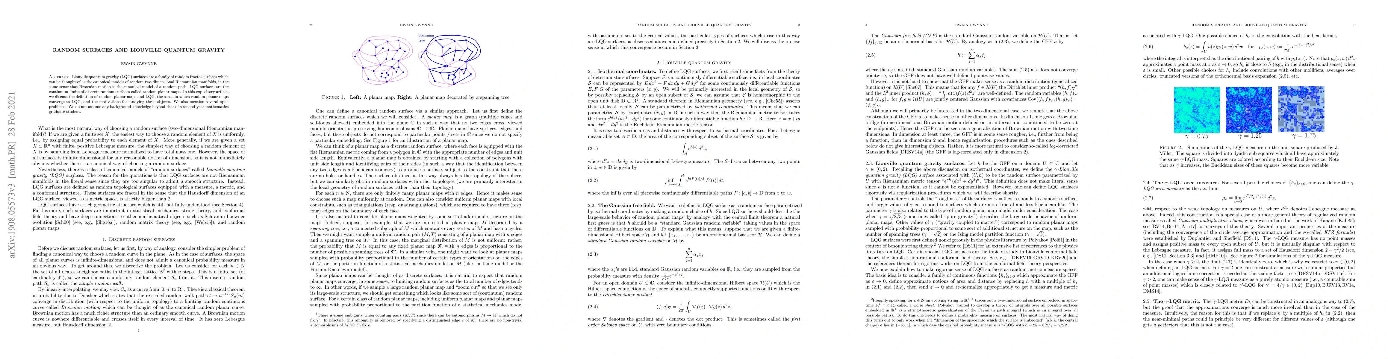 This paper introduces Liouville quantum gravity (LQG) surfaces as canonical models of random two-dimensional Riemannian manifolds, discussing their continuum limits from random planar maps and outlining motivations for studying them. It also highlights several open problems without requiring advanced background knowledge.