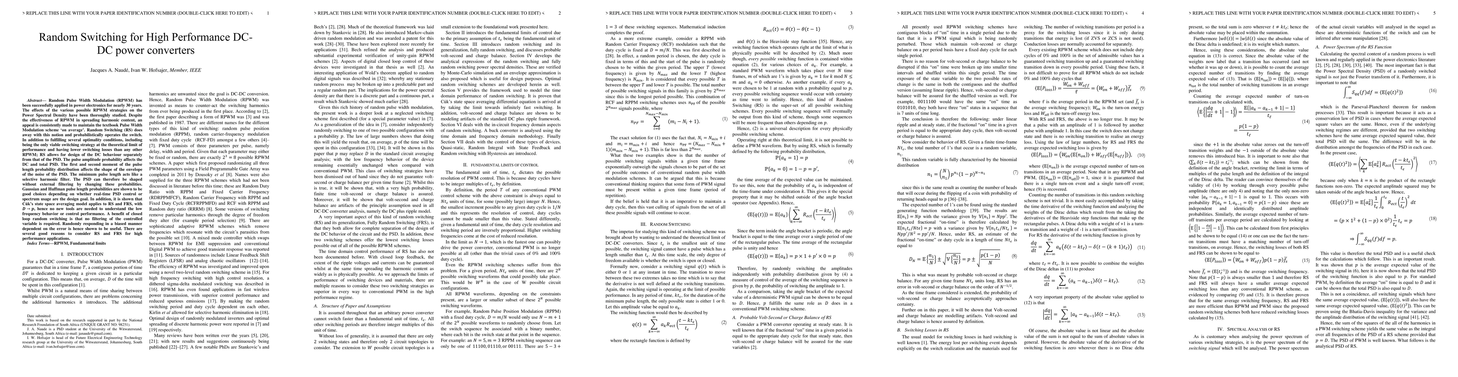 Random Switching (RS) outperforms traditional Pulse Width Modulation in DC-DC power converters by allowing for design of DC behavior independently of Power Spectral Density, with optimized switching losses and harmonic filtering capabilities.
