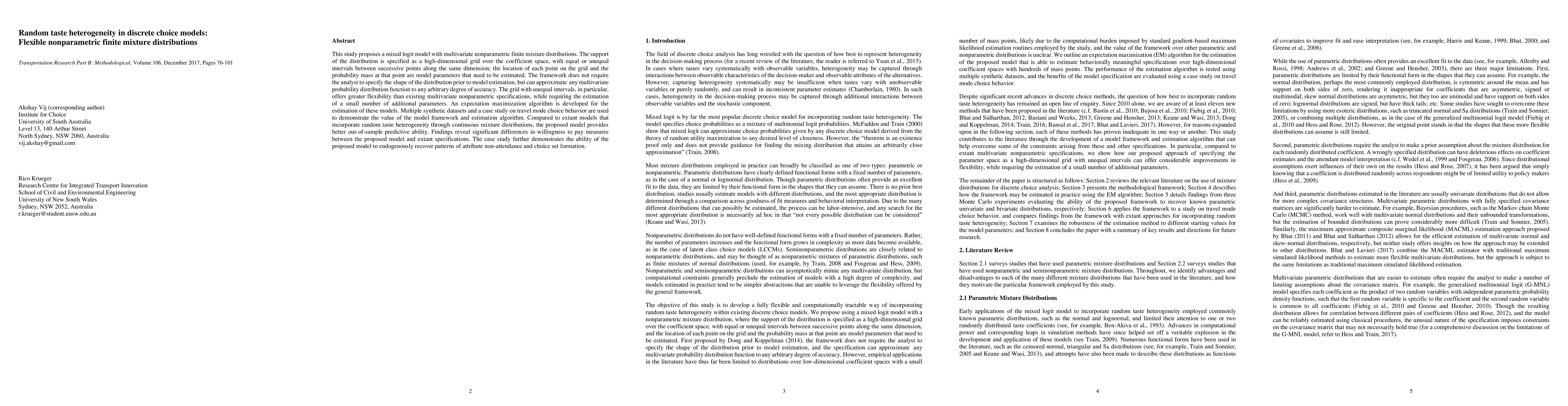 This paper introduces a mixed logit model utilizing multivariate nonparametric finite mixture distributions with a high-dimensional grid, allowing flexible approximation of any probability distribution function. The proposed model demonstrates superior predictive ability and reveals significant differences in willingness to pay measures compared to existing models.