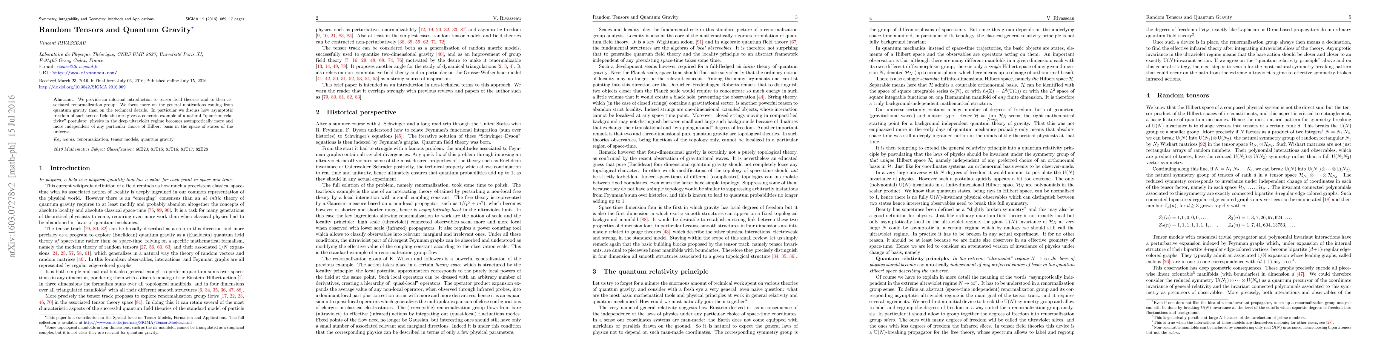 We provide an informal introduction to tensor field theories and to their associated renormalization group. We focus more on the general motivations coming from quantum gravity than on the technical details. In particular we discuss how asymptotic freedom of such tensor field theories gives a concrete example of a natural "quantum relativity" postulate: physics in the deep ultraviolet regime becomes asymptotically more and more independent of any particular choice of Hilbert basis in the space of states of the universe.