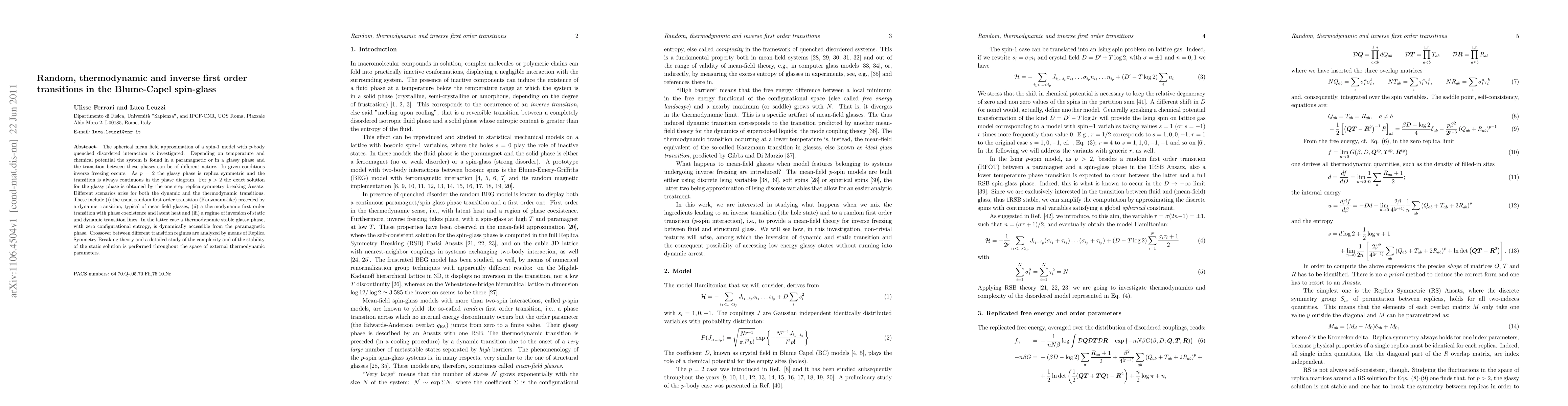 Researchers studied transitions in a spin-glass model at different temperatures and chemical potentials, finding inverse freezing, random first-order transitions, and thermodynamic phase coexistence.
