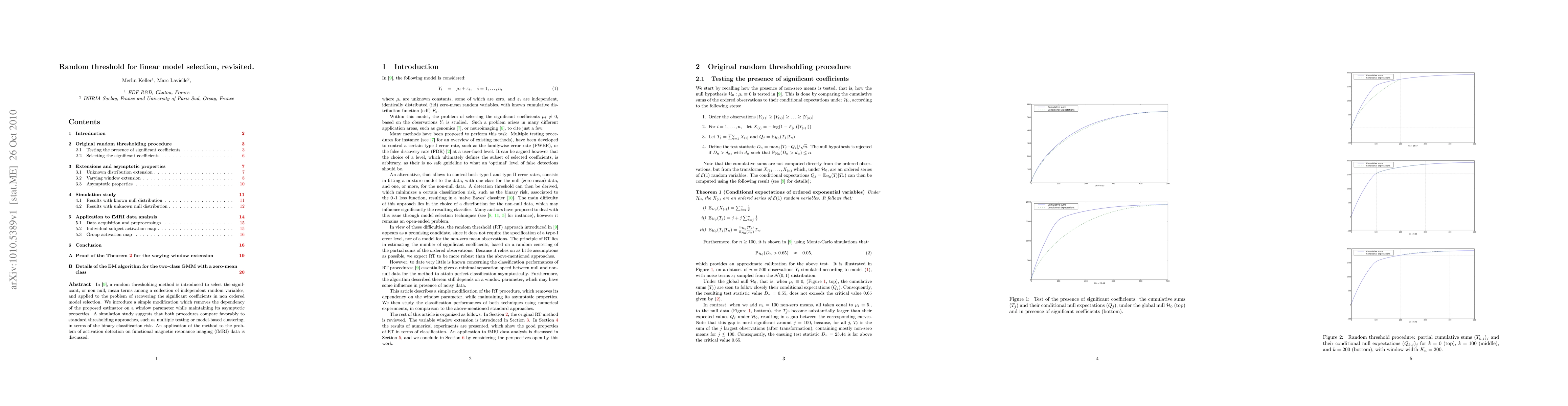 In [Lavielle and Ludena 07], a random thresholding metho d is intro duced to select the significant, or non null, mean terms among a collection of independent random variables, and applied to the problem of recovering the significant coefficients in non ordered model selection. We intro duce a simple modification which removes the dep endency of the proposed estimator on a window parameter while maintaining its asymptotic properties. A simulation study suggests that both procedures compare favorably to standard thresholding approaches, such as multiple testing or model-based clustering, in terms of the binary classification risk. An application of the method to the problem of activation detection on functional magnetic resonance imaging (fMRI) data is discussed.
