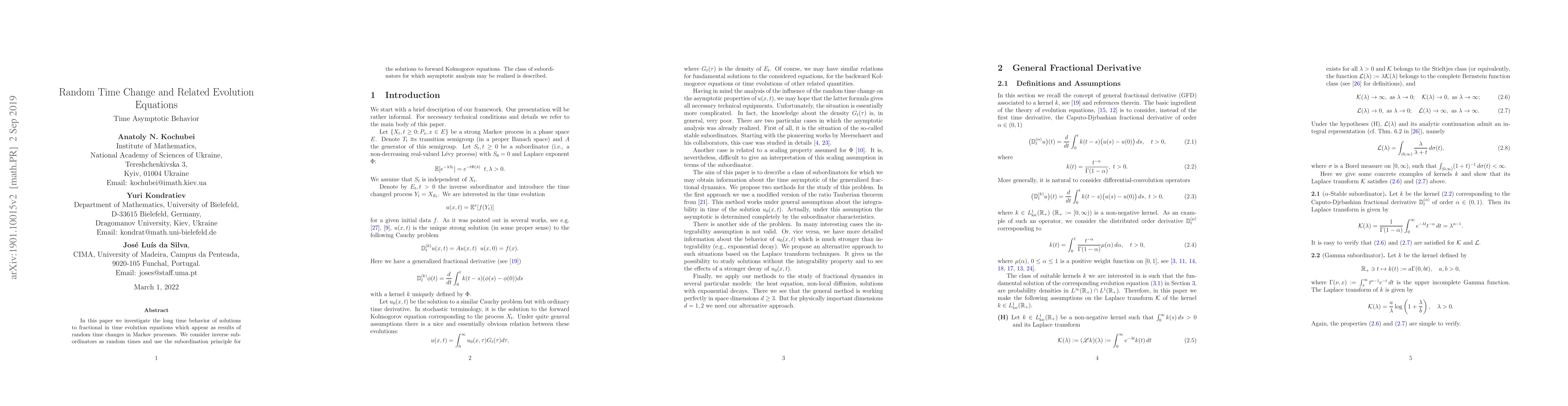 This paper explores the long-term behavior of solutions to fractional in time evolution equations arising from random time changes in Markov processes, focusing on inverse subordinators and employing the subordination principle for forward Kolmogorov equations to describe the class of subordinators suitable for asymptotic analysis.