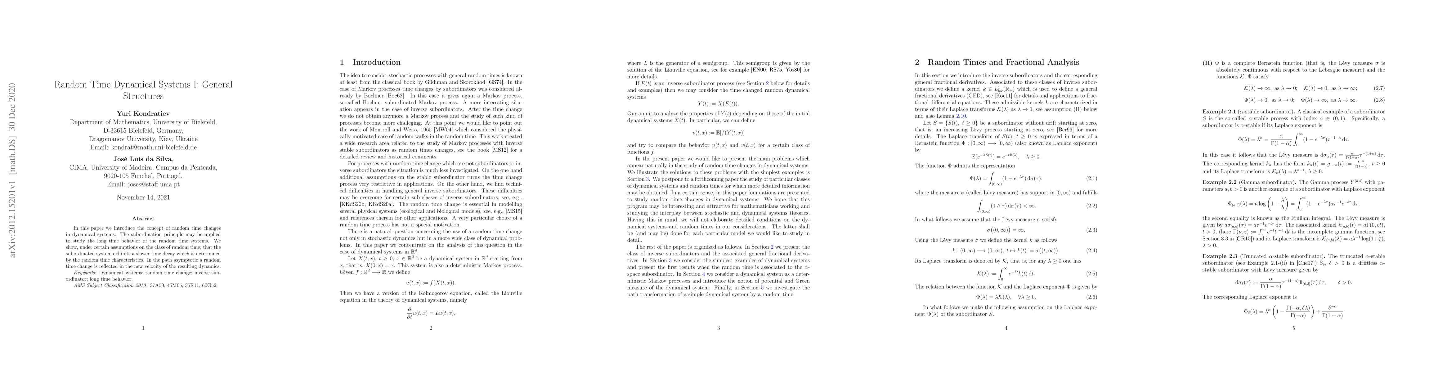 In this paper we introduce the concept of random time changes in dynamical systems. The subordination principle may be applied to study the long time behavior of the random time systems. We show, under certain assumptions on the class of random time, that the subordinated system exhibits a slower time decay which is determined by the random time characteristics. In the path asymptotic a random time change is reflected in the new velocity of the resulting dynamics.