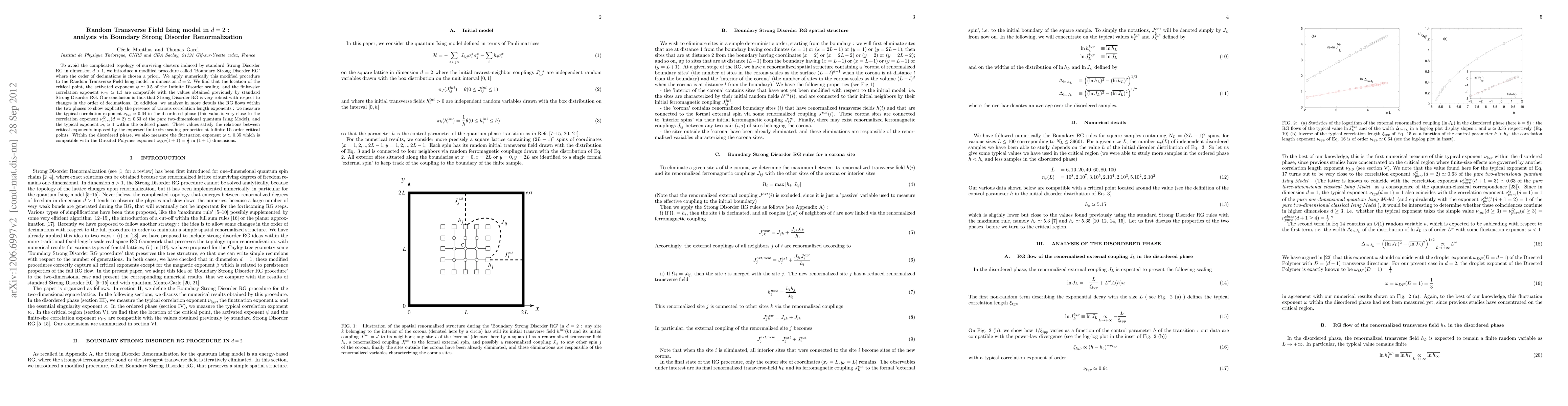 This paper introduces a modified 'Boundary Strong Disorder RG' to analyze the Random Transverse Field Ising model in 2D, finding that the critical point and scaling exponents are consistent with standard RG methods. The study reveals various correlation length exponents, including $\nu_{typ} \simeq 0.64$ in the disordered phase and $\nu_h \simeq 1$ in the ordered phase, confirming the robustness of Strong Disorder RG.