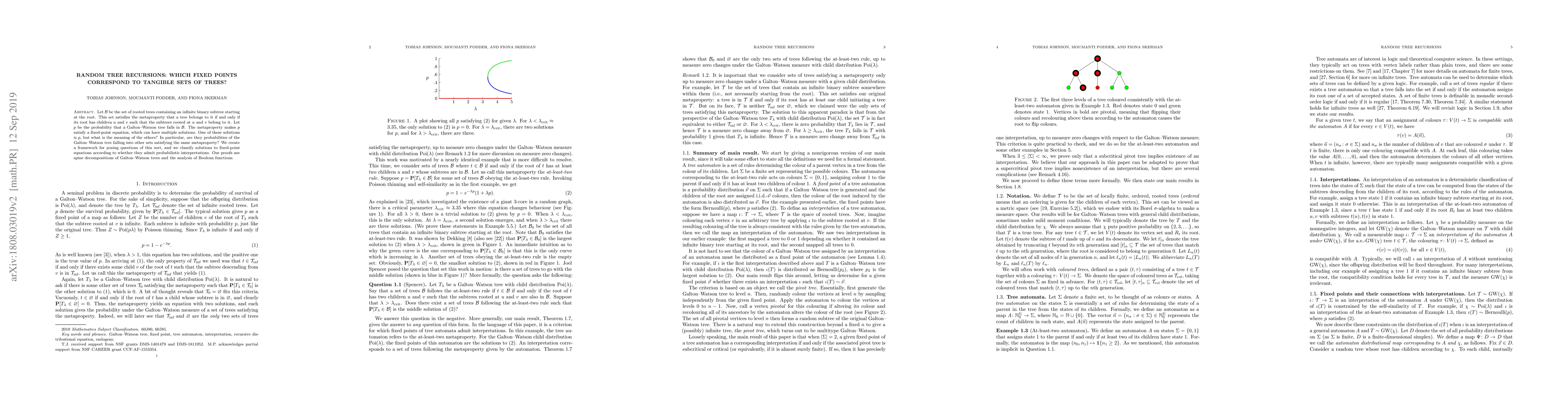 Let $\mathcal{B}$ be the set of rooted trees containing an infinite binary subtree starting at the root. This set satisfies the metaproperty that a tree belongs to it if and only if its root has children $u$ and $v$ such that the subtrees rooted at $u$ and $v$ belong to it. Let $p$ be the probability that a Galton-Watson tree falls in $\mathcal{B}$. The metaproperty makes $p$ satisfy a fixed-point equation, which can have multiple solutions. One of these solutions is $p$, but what is the meaning of the others? In particular, are they probabilities of the Galton-Watson tree falling into other sets satisfying the same metaproperty? We create a framework for posing questions of this sort, and we classify solutions to fixed-point equations according to whether they admit probabilistic interpretations. Our proofs use spine decompositions of Galton-Watson trees and the analysis of Boolean functions.