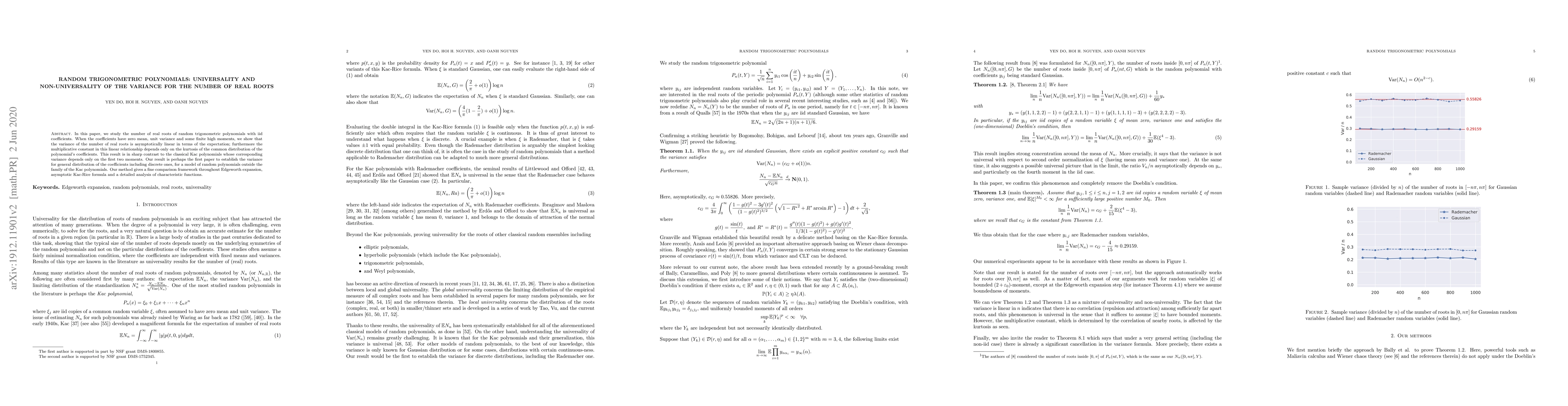 This paper investigates the variance of the number of real roots in random trigonometric polynomials with iid coefficients, demonstrating that its variance is asymptotically linear and depends on the kurtosis of the coefficient distribution, contrasting with classical Kac polynomials which depend only on the first two moments. The study introduces a new framework for analyzing random polynomials beyond the Kac model.