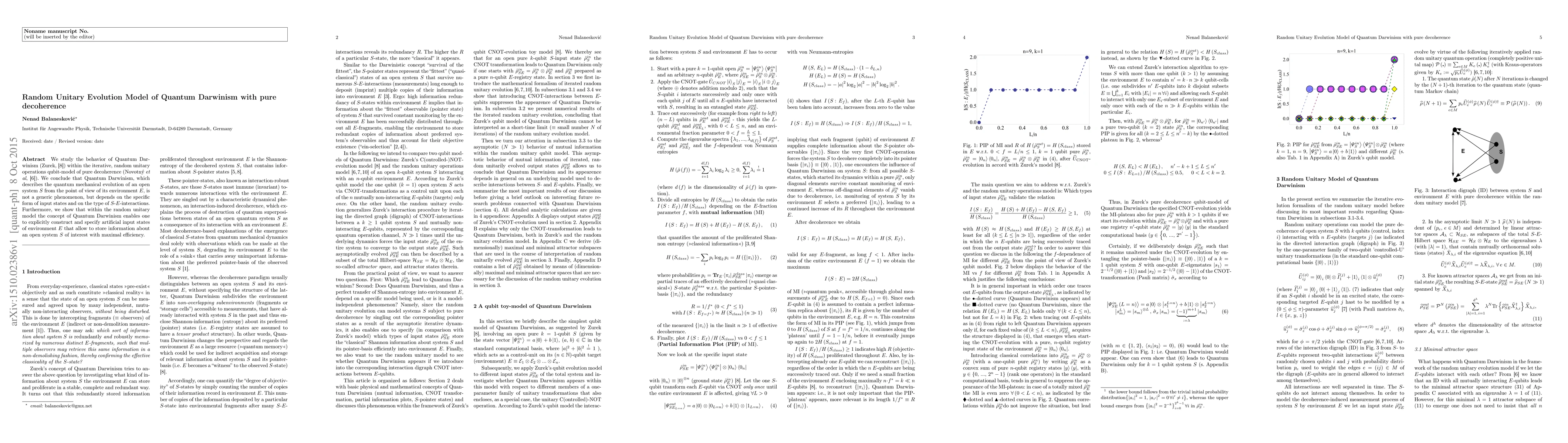 This paper explores Quantum Darwinism through a random unitary evolution model with pure decoherence, finding that it is not a universal phenomenon but is contingent on specific input states and interactions. The study also reveals that this model can be used to construct artificial input states that maximize the information storage about an open system.