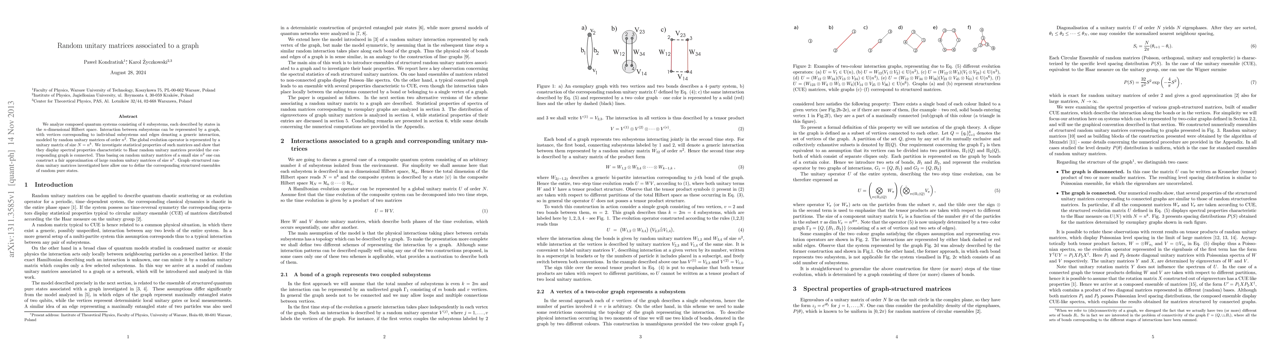 We analyze composed quantum systems consisting of $k$ subsystems, each described by states in the $n$-dimensional Hilbert space. Interaction between subsystems can be represented by a graph, with vertices corresponding to individual subsystems and edges denoting a generic interaction, modeled by random unitary matrices of order $n^2$. The global evolution operator is represented by a unitary matrix of size $N=n^k$. We investigate statistical properties of such matrices and show that they display spectral properties characteristic to Haar random unitary matrices provided the corresponding graph is connected. Thus basing on random unitary matrices of a small size $n^2$ one can construct a fair approximation of large random unitary matrices of size $n^{k}$. Graph--structured random unitary matrices investigated here allow one to define the corresponding structured ensembles of random pure states.