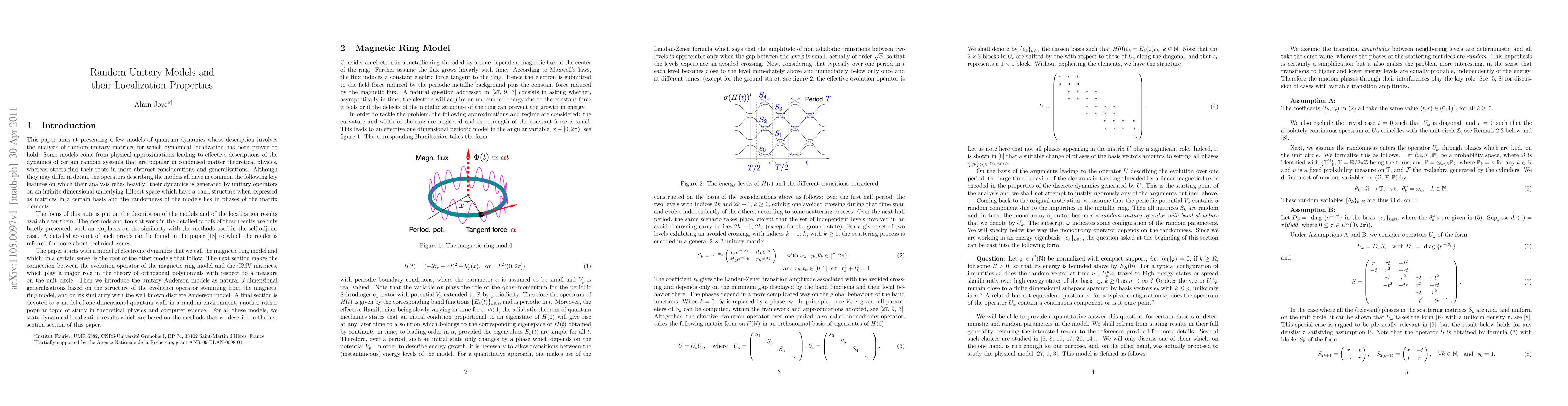 This paper explores how random unitary matrices can lead to localization in quantum dynamics, with models drawn from physical approximations and abstract considerations.