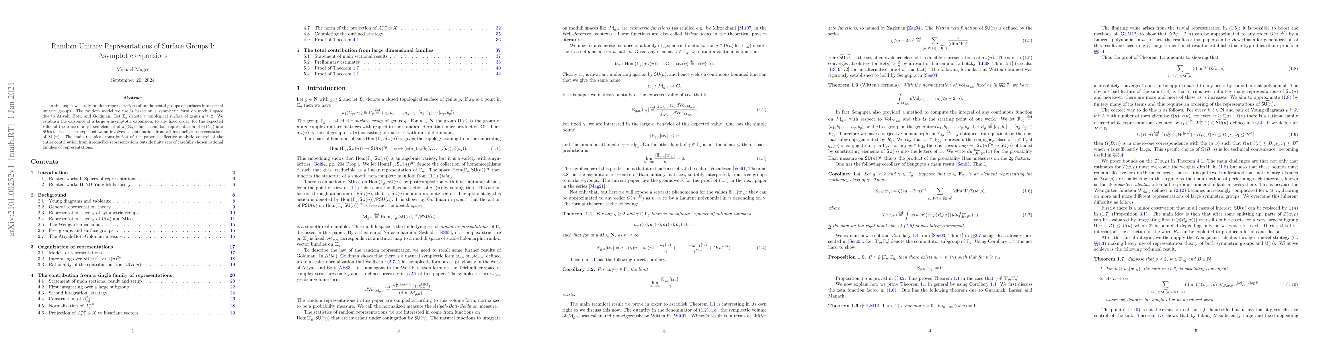This research establishes an asymptotic expansion for the expected value of traces of elements in the fundamental group of a surface of genus g (with g ≥ 2) under random representations into SU(n). The methodology involves analytic control of irreducible representation contributions outside selected rational families.