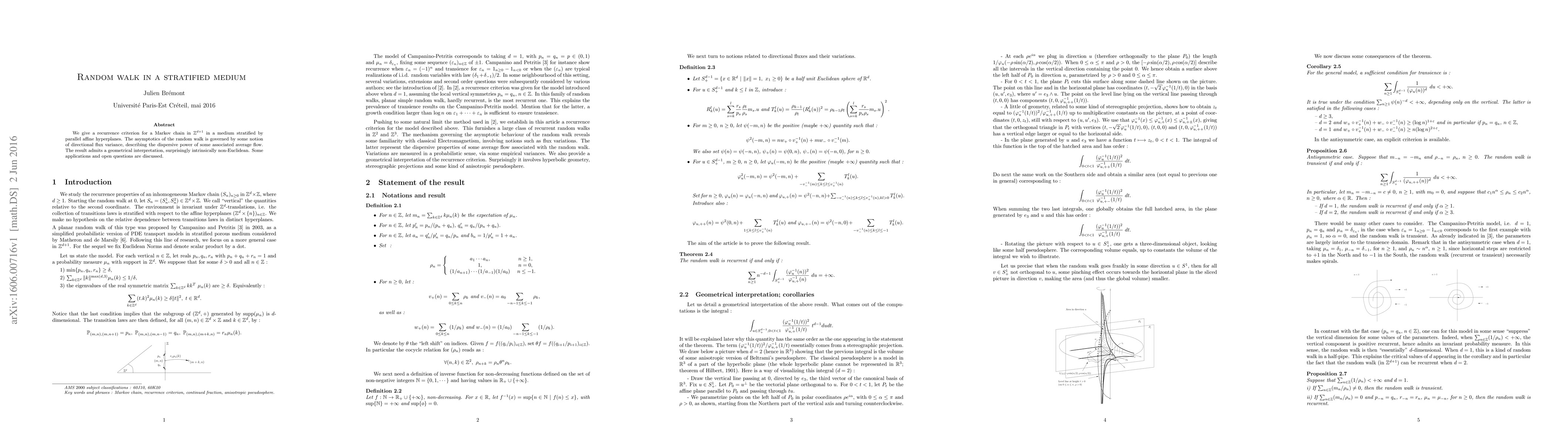The study found that the random walk in the stratified medium exhibits unique behavior, shedding light on the interactions between different layers and potential applications in fields like physics and engineering.