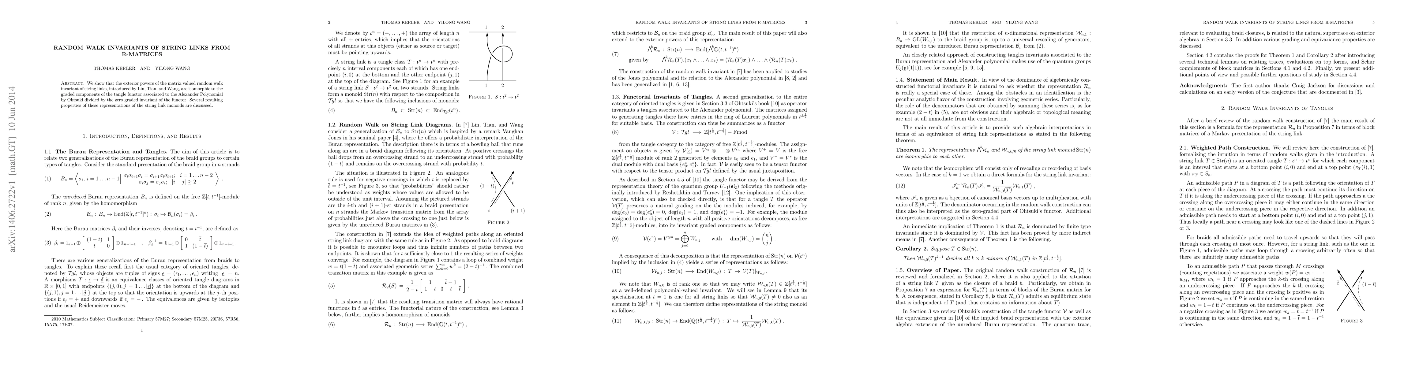 We show that the exterior powers of the matrix valued random walk invariant of string links, introduced by Lin, Tian, and Wang, are isomorphic to the graded components of the tangle functor associated to the Alexander Polynomial by Ohtsuki divided by the zero graded invariant of the functor. Several resulting properties of these representations of the string link monoids are discussed.
