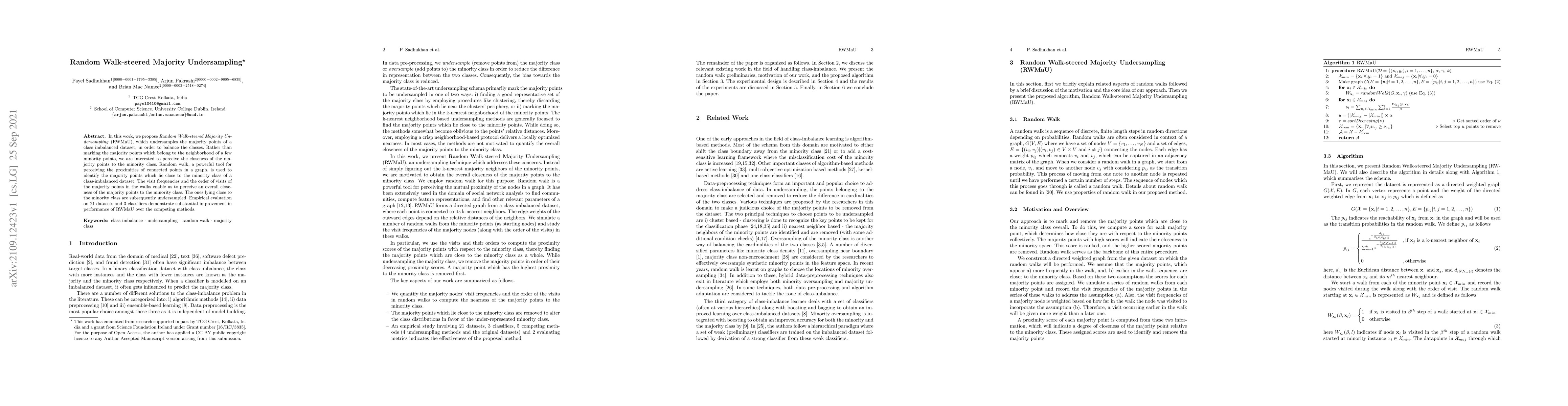 This paper introduces RWMaU, a method using random walks to identify and undersample majority class points close to minority class points in imbalanced datasets, significantly improving classifier performance across 21 datasets and 3 classifiers.