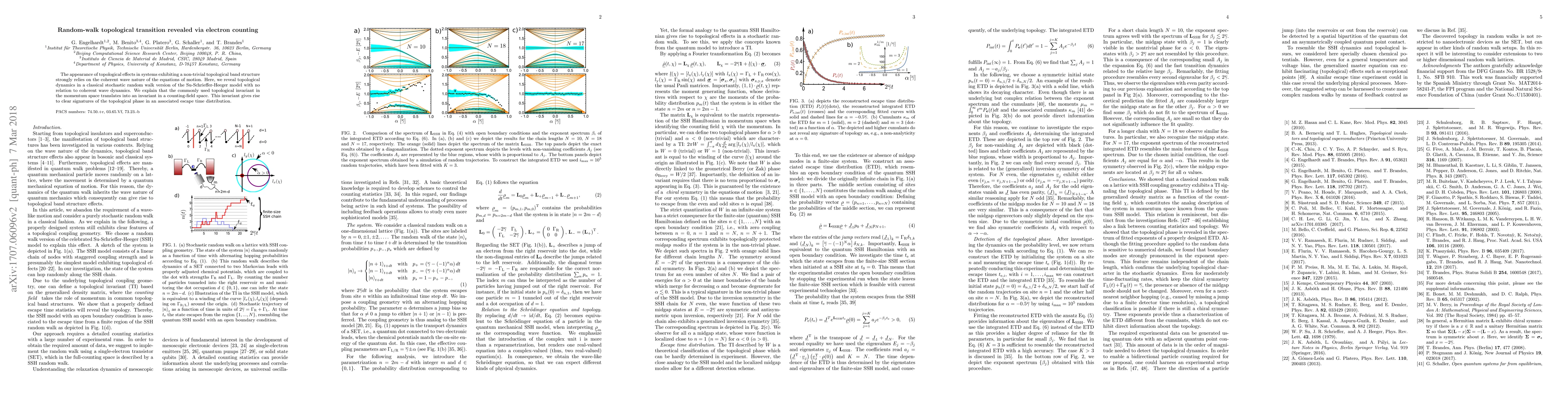 The appearance of topological effects in systems exhibiting a non-trivial topological band structure strongly relies on the coherent wave nature of the equations of motion. Here, we reveal topological dynamics in a classical stochastic random walk version of the Su-Schrieffer-Heeger model with no relation to coherent wave dynamics. We explain that the commonly used topological invariant in the momentum space translates into an invariant in a counting-field space. This invariant gives rise to clear signatures of the topological phase in an associated escape time distribution.