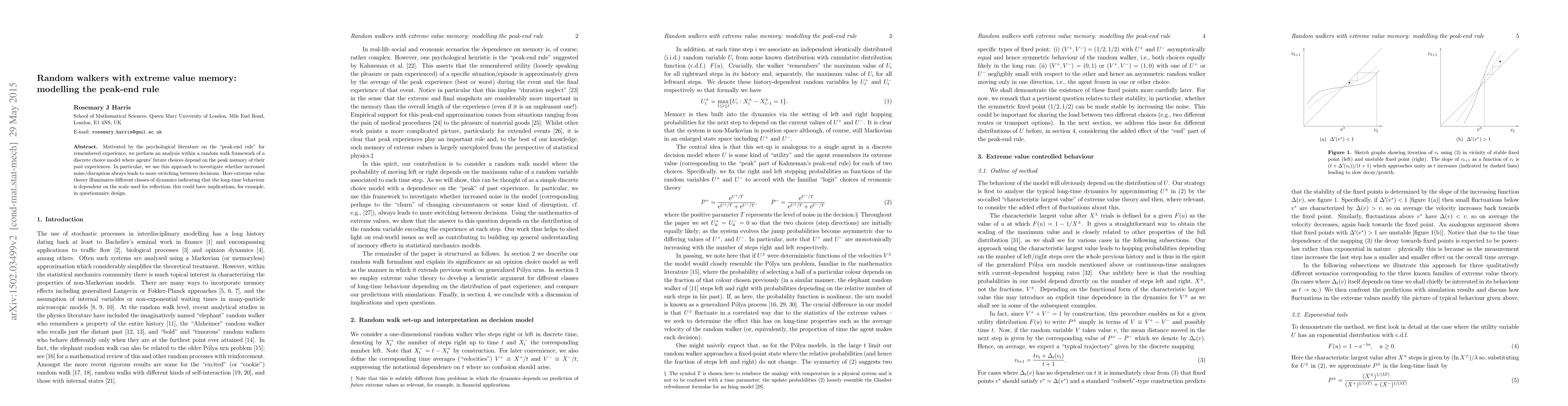 Motivated by the psychological literature on the "peak-end rule" for remembered experience, we perform an analysis within a random walk framework of a discrete choice model where agents' future choices depend on the peak memory of their past experiences. In particular, we use this approach to investigate whether increased noise/disruption always leads to more switching between decisions. Here extreme value theory illuminates different classes of dynamics indicating that the long-time behaviour is dependent on the scale used for reflection; this could have implications, for example, in questionnaire design.