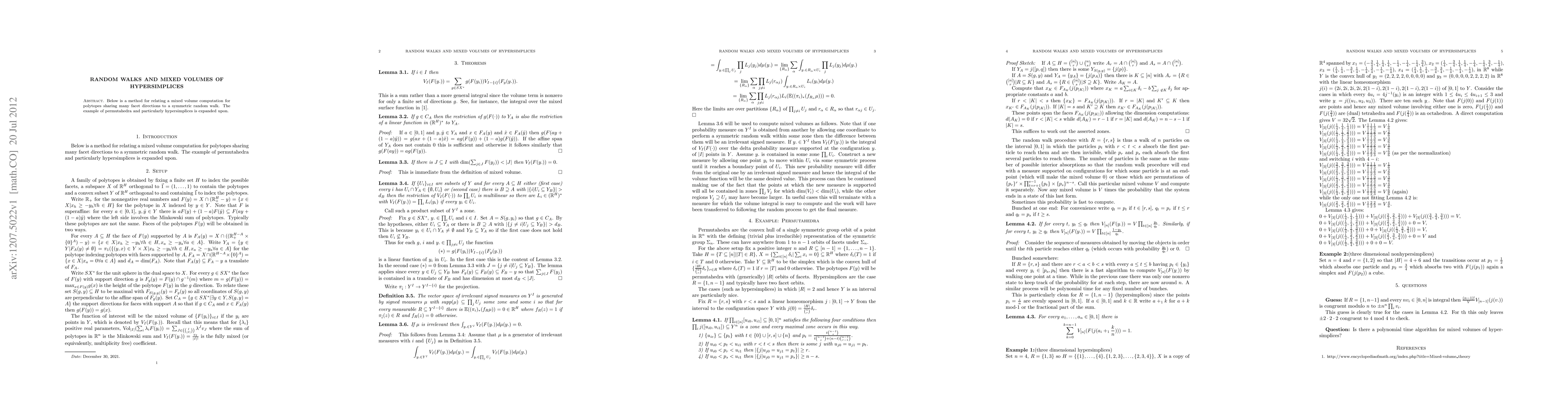 Below is a method for relating a mixed volume computation for polytopes sharing many facet directions to a symmetric random walk. The example of permutahedra and particularly hypersimplices is expanded upon.