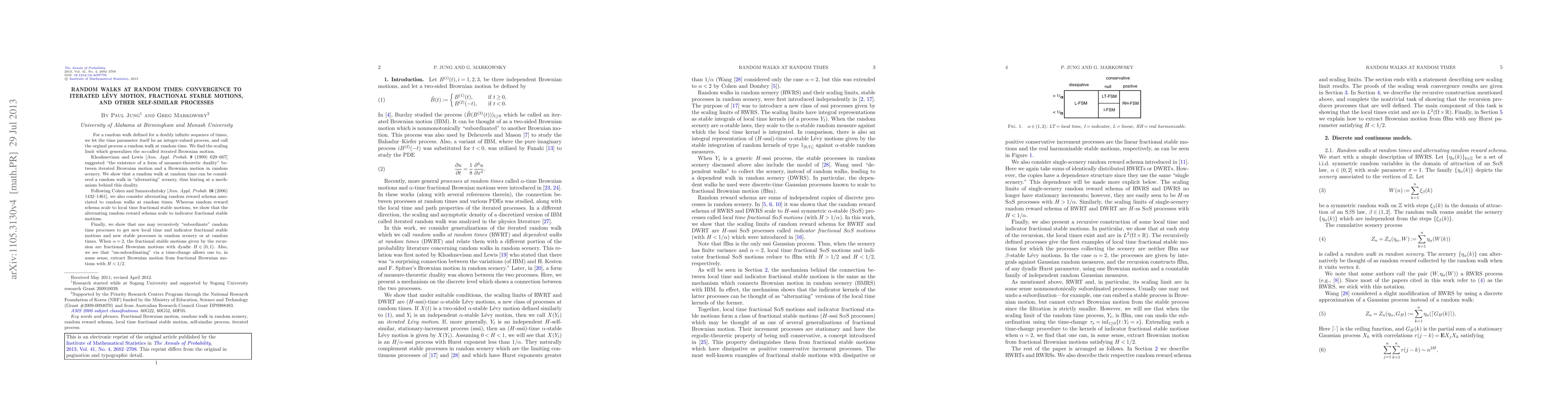 This paper investigates the convergence of random walks defined at random times to iterated Lévy motion and fractional stable motions. It reveals a measure-theoretic duality between iterated Brownian motion and random scenery, and demonstrates how random walks at random times can be viewed as random walks in alternating scenery, providing insight into this duality.