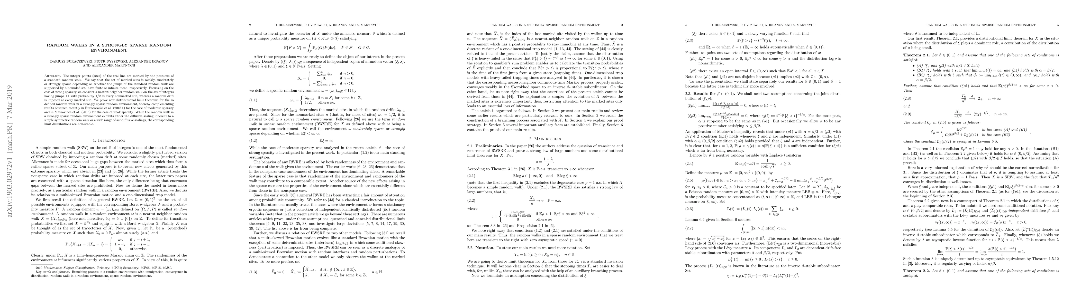 This paper investigates a nearest neighbor random walk on the integers with random drifts at marked sites, focusing on the case of strong sparsity. It establishes new distributional limit theorems for this random walk, revealing either diffusive or subdiffusive scaling behaviors, with non-stable limit distributions.