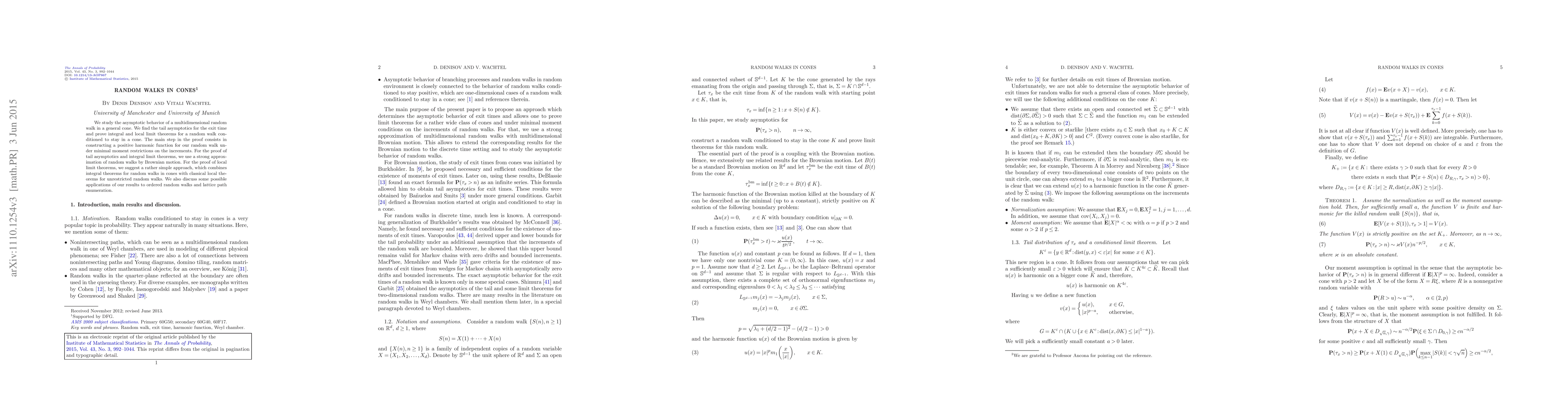 This research provides insights into the behavior of random walks in cones, which has applications in areas such as ordered random walks and lattice path enumeration.